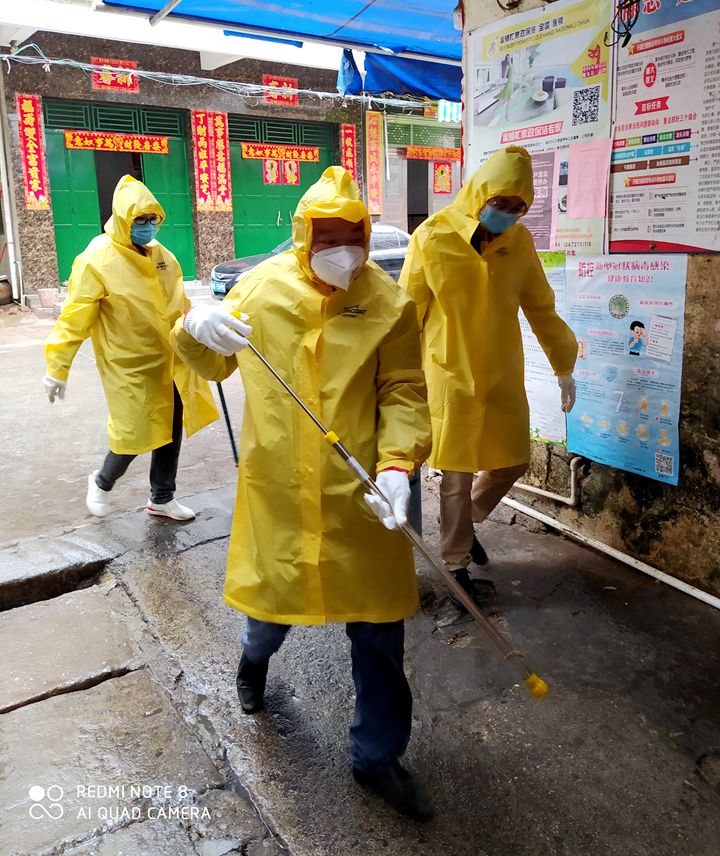 得到組織批準的當天下午,黃杰就自駕車,帶著集團捐贈社區(qū)的120斤消毒水等防疫物資趕到了南街社區(qū)居委會。一去到,他就背起了40斤重的消毒噴桶,跟著居委會工作人員開始了走街串巷的消毒工作。為加強防疫防護知識的宣傳,有長期駐村扶貧經(jīng)驗的黃杰還用黎話自編了一個順口溜: