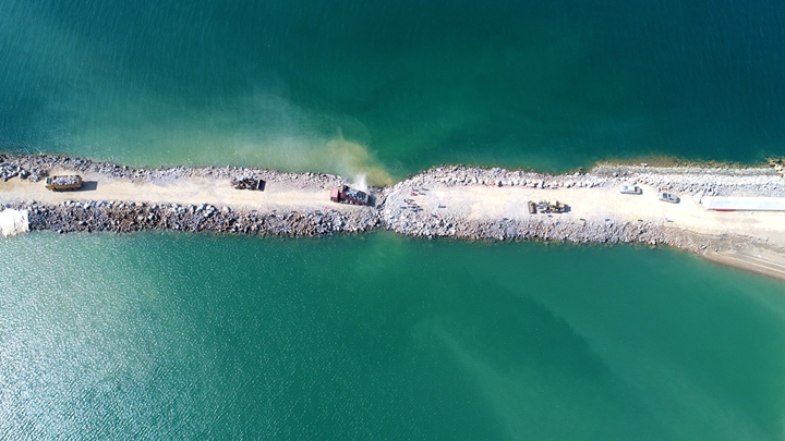 在粵西LNG造陸項(xiàng)目現(xiàn)場(chǎng),趙廣輝認(rèn)真聽(tīng)取了項(xiàng)目負(fù)責(zé)人員關(guān)于項(xiàng)目合攏情況的匯報(bào),詳細(xì)了解項(xiàng)目后續(xù)工作規(guī)劃。他肯定了茂名港集團(tuán)作為業(yè)主單位在項(xiàng)目建設(shè)過(guò)程中不等不靠、主動(dòng)作為,在與東西防波堤工程體量相當(dāng)?shù)那闆r下,克服了資金緊、任務(wù)重、風(fēng)險(xiǎn)大、協(xié)調(diào)難等重重困難,在疫情期間解決了復(fù)工難的問(wèn)題,順利實(shí)現(xiàn)了項(xiàng)目的合攏,標(biāo)志著粵西LNG造陸項(xiàng)目基本具備交地條件,再次創(chuàng)造了屬于茂名港人的奇跡。他指出,粵西LNG造陸項(xiàng)目的建成,為粵西LNG接收站項(xiàng)目的落地夯實(shí)了基礎(chǔ),對(duì)濱海新區(qū)發(fā)展綠色臨港產(chǎn)業(yè)具有重要而深遠(yuǎn)的意義。他希望茂名港集團(tuán)繼續(xù)發(fā)揮好濱海新區(qū)籌融資和項(xiàng)目建設(shè)平臺(tái)作用,充分總結(jié)、運(yùn)用粵西LNG造陸項(xiàng)目建設(shè)管理經(jīng)驗(yàn),攻堅(jiān)克難,進(jìn)一步助力濱海新區(qū)加快向海而興發(fā)展。