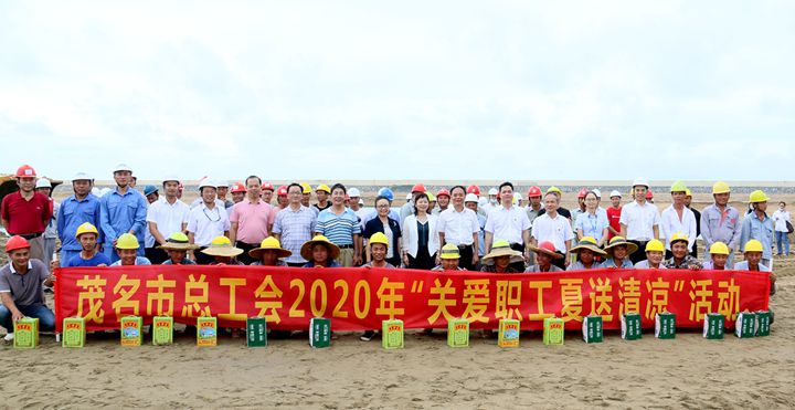 8月13日下午,市人大常委會副主任、市總工會主席黃奕奕率市總工會工作人員走進茂名港集團項目建設工地,開展“關愛職工 夏送清涼”活動,為一線職工送上王老吉、菊花茶、冰糖雪梨等清涼降暑物資。茂名港集團黨委書記、董事長劉乃英,集團黨委副書記、工會主席肖炳璋陪同慰問。