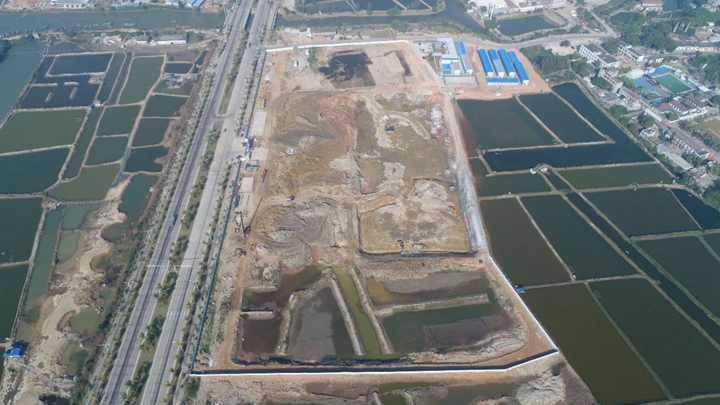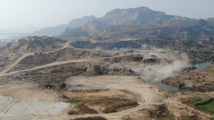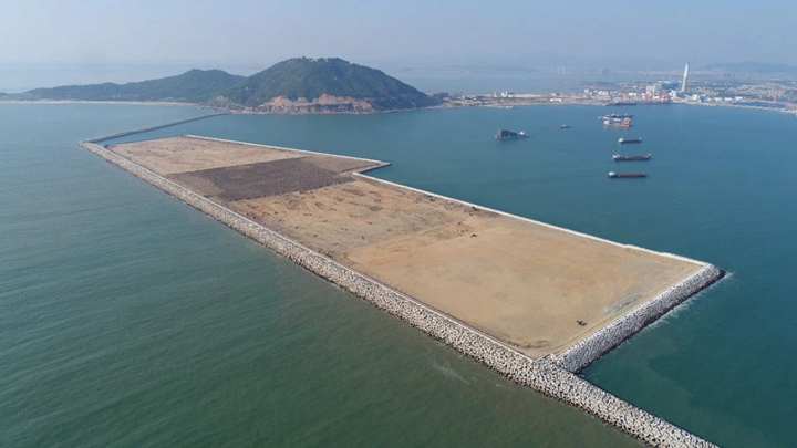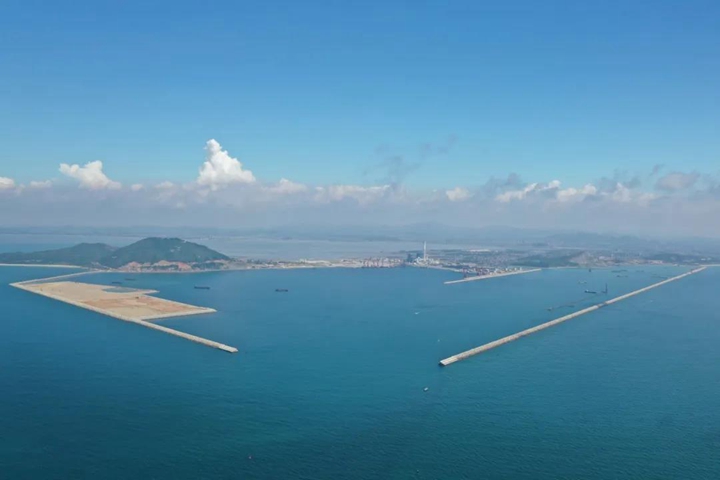 鳥瞰茂名港務(wù)中心施工現(xiàn)場