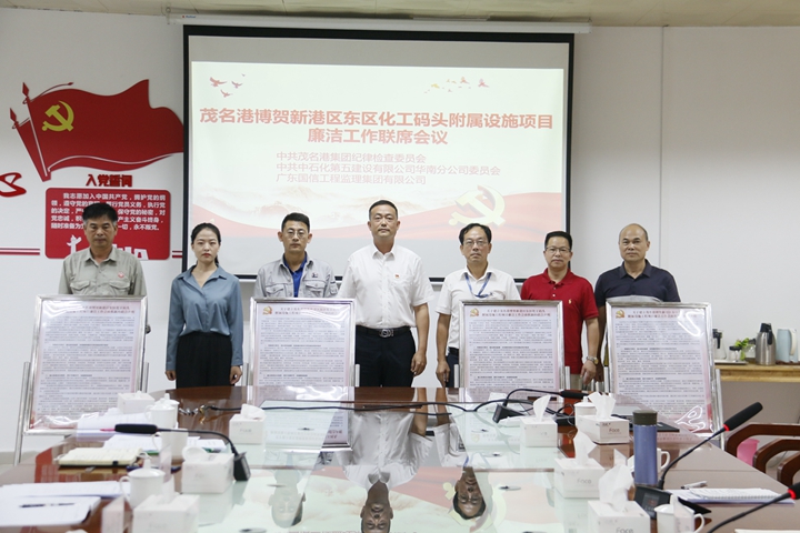 會上,參建各方共同簽署了《關(guān)于建立茂名港博賀新港區(qū)東區(qū)化工碼頭附屬設(shè)施項目廉潔工作會商機(jī)制的聯(lián)合聲明》,交流互換了《廉政風(fēng)險點(diǎn)及防控措施表》。參建各方項目負(fù)責(zé)人作了表態(tài)發(fā)言。