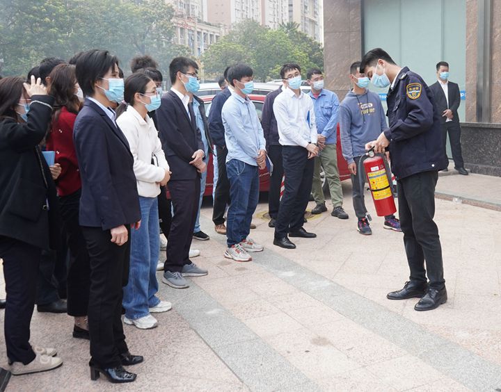 現(xiàn)場(chǎng)情景模擬疏散演練環(huán)節(jié),教官使用煙霧彈模擬會(huì)議室發(fā)生火災(zāi)情景,現(xiàn)場(chǎng)工作人員組織參訓(xùn)人員從五樓會(huì)議室按安全疏散通道指示撤離到一樓大門(mén)集中。在教官講解示范下,參訓(xùn)人員進(jìn)一步學(xué)習(xí)了干粉滅火器的使用方法和注意事項(xiàng),參與了滅油桶火實(shí)操活動(dòng)。