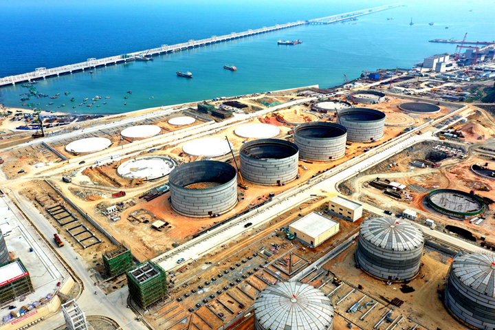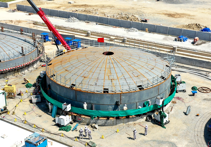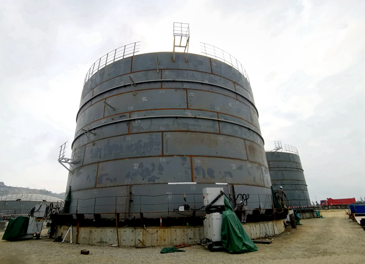 在豐收的季節(jié)里,茂名港博賀新港區(qū)東區(qū)化工倉儲項目建設(shè)進度喜人,碩果頻結(jié):該項目已全面進入罐體安裝階段,目前共計14臺儲罐主體已經(jīng)安裝完成,儲罐附件及其他罐組儲罐安裝正在如火如荼地進行中。