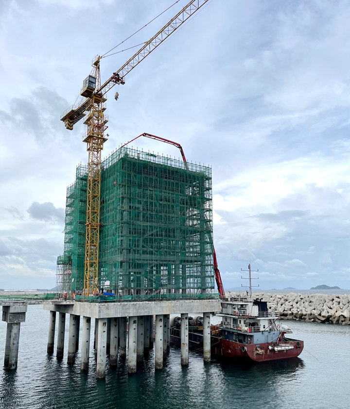 不負(fù)厚望,喜報頻傳!繼6月29日茂名港博賀新港區(qū)東區(qū)油品碼頭工程水域公用管廊棧橋現(xiàn)澆面層完成澆筑后,6月30日下午,油品碼頭工程2#工作樓喜封金頂,雙重獻(xiàn)禮慶祝建黨101周年!