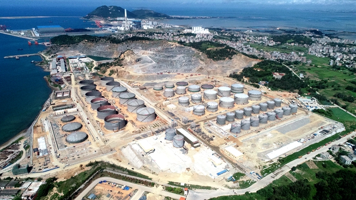 茂名港博賀新港區(qū)東區(qū)化工倉儲(chǔ)項(xiàng)目完成罐體安裝,項(xiàng)目總體進(jìn)度完成82%;