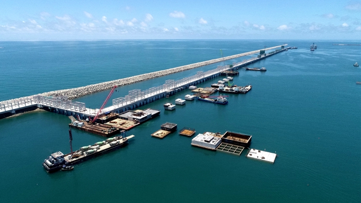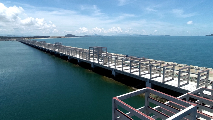 ▲茂名港務(wù)中心項(xiàng)目 在這乘風(fēng)破浪、跨越發(fā)展的十年里,茂名港深水大港崢嶸初現(xiàn),碩果累累——實(shí)現(xiàn)資產(chǎn)規(guī)模和融資規(guī)模“雙百”目標(biāo),為濱海新區(qū)基礎(chǔ)設(shè)施建設(shè)和茂名港集團(tuán)發(fā)展提供資金保障,融資平臺(tái)作用凸顯;自建、參建省市重點(diǎn)項(xiàng)目超30個(gè),推動(dòng)博賀新港區(qū)東西防波堤、10萬(wàn)噸級(jí)成品油碼頭、東區(qū)化工碼頭、東區(qū)化工倉(cāng)儲(chǔ)、粵西LNG造陸項(xiàng)目、茂名港務(wù)中心、博賀灣大橋、供水工程等一批省市重點(diǎn)項(xiàng)目建設(shè)投用,充分發(fā)揮濱海新區(qū)項(xiàng)目建設(shè)主體作用,加快推進(jìn)口岸開(kāi)放工作,為茂名經(jīng)濟(jì)實(shí)現(xiàn)高質(zhì)量發(fā)展增添動(dòng)力。 前瞻布局,打造南海能源新通道,積極融入茂名“向海而興”發(fā)展大局。