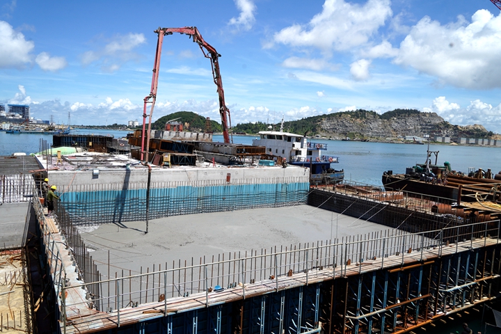 ▲東區(qū)化工碼頭項(xiàng)目胸墻澆筑作業(yè) 集團(tuán)當(dāng)前在建的10萬(wàn)噸級(jí)成品油碼頭、東區(qū)化工碼頭等碼頭泊位建設(shè)進(jìn)入沖刺階段,認(rèn)真貫徹市委市政府關(guān)于加快口岸開(kāi)放工作的要求,計(jì)劃今年竣工驗(yàn)收;茂名港務(wù)中心已完成主體結(jié)構(gòu)施工,計(jì)劃今年建成投用,將為濱海新區(qū)樹(shù)立嶄新地標(biāo);30萬(wàn)噸級(jí)原油碼頭報(bào)批報(bào)建工作取得重大突破,項(xiàng)目岸線(xiàn)申請(qǐng)獲得國(guó)家交通運(yùn)輸部批復(fù),前期工作不斷加快推進(jìn),即將進(jìn)入實(shí)質(zhì)性實(shí)施階段,現(xiàn)代化深水大港的畫(huà)卷徐徐展開(kāi)。 挖潛增效,劃轉(zhuǎn)老國(guó)企扭虧為盈,實(shí)現(xiàn)國(guó)有資產(chǎn)保值增值。