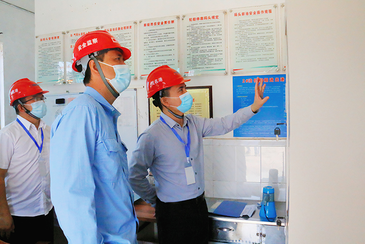在中油王港及港口經(jīng)營公司,督導(dǎo)組一行認(rèn)真檢查生產(chǎn)作業(yè)及疫情防控各項(xiàng)保障措施落實(shí)情況,并詳細(xì)向一線工作人員詢問工作流程、人員值守情況及生活狀況。