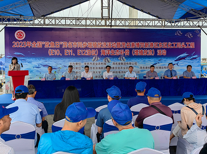 6月6日,茂名市農(nóng)業(yè)農(nóng)村局與茂名港集團(tuán)聯(lián)合在茂名市放雞島人工魚礁區(qū)開展2023年全國(guó) “放魚日” 茂名市同步增殖放流活動(dòng)暨茂名港博賀新港區(qū)東區(qū)化工碼頭工程海洋生態(tài)補(bǔ)償(增殖放流)活動(dòng)。廣東茂名濱海新區(qū)黨工委副書記黃永,茂名市農(nóng)業(yè)農(nóng)村局副局長(zhǎng)鐘秀威,茂名市自然資源局三級(jí)調(diào)研員羅進(jìn)鑫,茂名市人民檢察院第四檢察部主任仲江,茂名市生態(tài)環(huán)境局自然生態(tài)保護(hù)科科長(zhǎng)朱國(guó)慶,茂名港集團(tuán)黨委委員、副總裁楊超燦及有關(guān)單位約百余人參加了活動(dòng)。