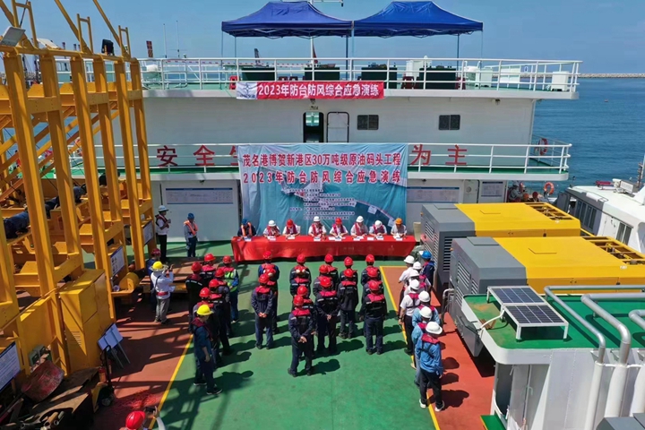 30萬噸級原油碼頭項目經(jīng)理部聯(lián)合市海事局、市海上搜救中心等單位開展防臺防風(fēng)綜合應(yīng)急演練,期間模擬消防救火、人員落水搶救、溢油處置等情景進行處置,強化合作,鍛煉隊伍,有效提高“三防”應(yīng)急處置能力;