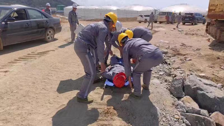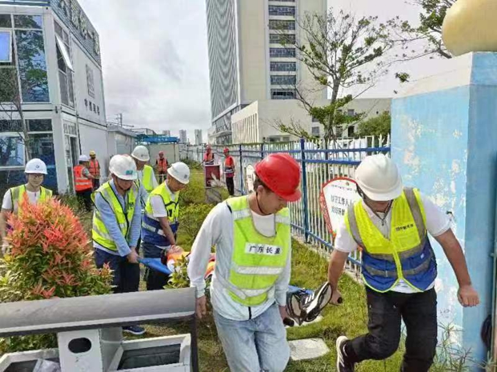 港務(wù)中心項目經(jīng)理部進行防觸電專項演練,組織得力,救護合理;