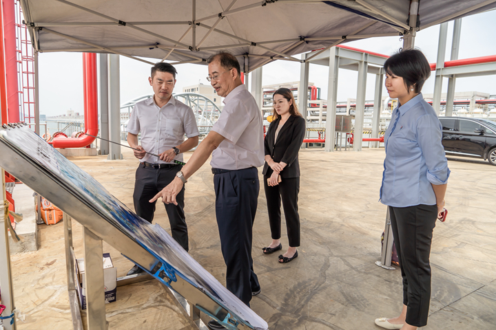 8月17日下午,粵港澳大灣區(qū)供應(yīng)鏈研究院執(zhí)行院長(zhǎng)邱國宣一行到訪集團(tuán)調(diào)研。集團(tuán)黨委書記、董事長(zhǎng)王志華,黨委副書記、常務(wù)副總裁朱廣宇及相關(guān)負(fù)責(zé)人陪同調(diào)研交流。 邱國宣一行深入博賀新港區(qū)一線建設(shè)現(xiàn)場(chǎng),在東區(qū)油品碼頭E2泊位前,朱廣宇向客人詳細(xì)介紹了茂名港博賀新港區(qū)的項(xiàng)目規(guī)劃和項(xiàng)目建設(shè)情況。