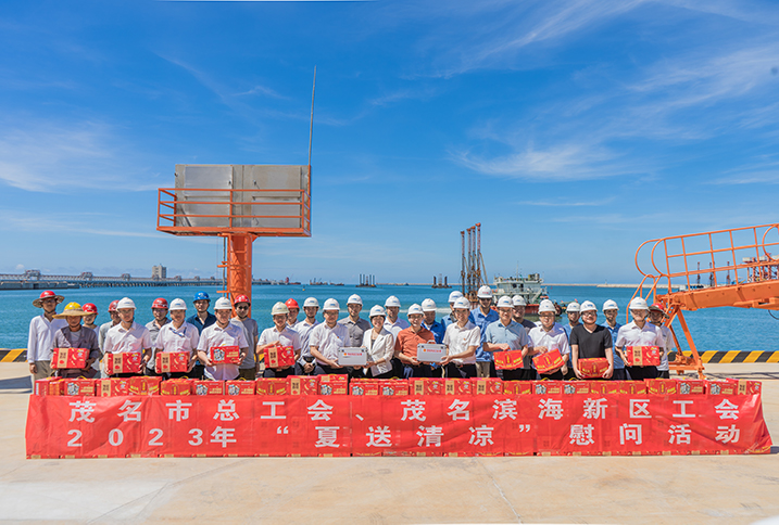 7月25日,茂名市總工會黨組成員、常務副主席柯周梅率市總工會工作人員走進茂名港集團項目建設工地,開展“夏送清涼”慰問及調(diào)研活動,為一線職工送上防暑降溫飲品、用品。茂名港集團黨委委員、副總裁、工會主席楊超燦參加活動。