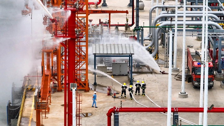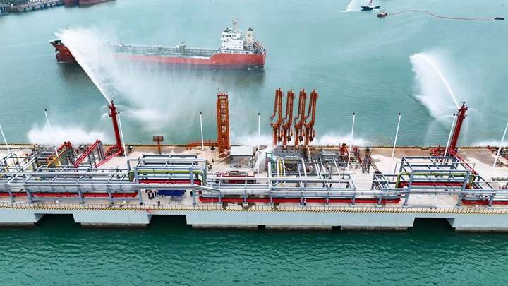 此次演練是集團(tuán)在博賀新港區(qū)投產(chǎn)前最接近實(shí)操的實(shí)戰(zhàn)演練,旨在提高企業(yè)處理泊位緊急事故的應(yīng)變和整體協(xié)調(diào)能力,提高應(yīng)急人員對(duì)泊位突發(fā)事故的應(yīng)急指揮、操作聯(lián)動(dòng)和救援水平。在各方的共同努力下,經(jīng)過(guò)1小時(shí)緊張有序的應(yīng)急處置,成功控制油料泄漏事故,圓滿完成演練任務(wù),標(biāo)志著博賀新港區(qū)油品碼頭和化工碼頭投產(chǎn)運(yùn)營(yíng)工作已完成關(guān)鍵節(jié)點(diǎn)。 陳力表示,此次演練增強(qiáng)了轄區(qū)碼頭企業(yè)、船舶企業(yè)及相關(guān)單位的防污染意識(shí)和聯(lián)合作戰(zhàn)能力,有效落實(shí)了港口單位污染防治主體責(zé)任,將有力推動(dòng)港口運(yùn)輸生產(chǎn)和海洋環(huán)境保護(hù)協(xié)調(diào)發(fā)展。 李昱祺表示,本次演練充分展示了集團(tuán)下屬子公司在應(yīng)急指揮、操作聯(lián)動(dòng)和救援水平等方面的綜合管理能力,為后續(xù)投產(chǎn)運(yùn)營(yíng)提供了寶貴經(jīng)驗(yàn)。下一步,集團(tuán)將繼續(xù)做好人員培訓(xùn)、常態(tài)化應(yīng)急演練等工作,進(jìn)一步提高協(xié)調(diào)作戰(zhàn)能力,為茂名港域平安港口建設(shè)貢獻(xiàn)力量。 此次演練還得到了茂名石化北山嶺消防中隊(duì)、廣東海安水運(yùn)技術(shù)服務(wù)有限公司、茂名昌利船舶有限公司、茂名眾和海上防污工程有限公司等單位的大力支持與協(xié)助。