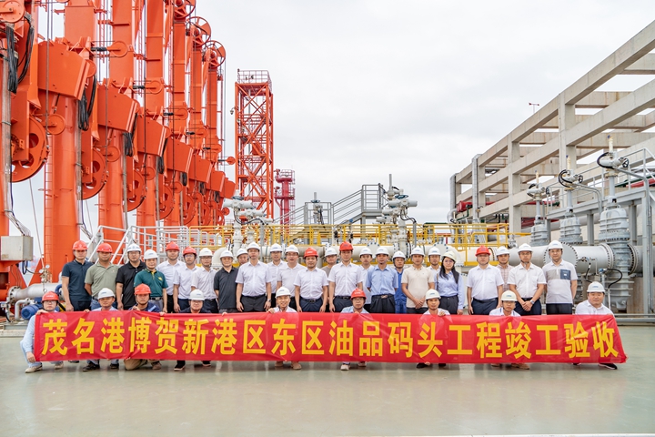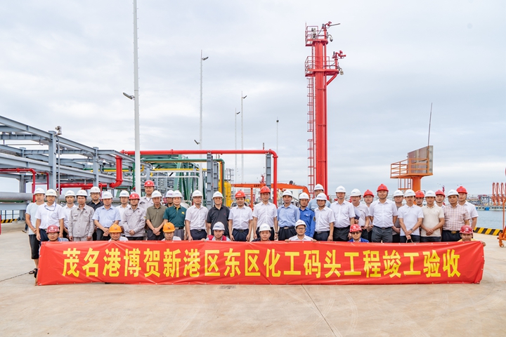 2024年5月31日,茂名港博賀新港區(qū)東區(qū)化工碼頭、油品碼頭工程順利通過竣工驗(yàn)收?⒐を(yàn)收會議分別由茂名港集團(tuán)下屬企業(yè)茂名港長興石化儲運(yùn)有限公司以及茂名港集團(tuán)參股企業(yè)茂名石化博賀港儲運(yùn)有限公司組織召開。廣東茂名濱海新區(qū)管委會、茂名市發(fā)展改革局、茂名市自然資源局、茂名市交通運(yùn)輸局、茂名市生態(tài)環(huán)境局、茂名市城市建設(shè)檔案館、茂名海事局、茂名市衛(wèi)生健康局、茂名港引航站等職能部門、項(xiàng)目參建方負(fù)責(zé)人和特邀專家團(tuán)隊(duì)參加會議。茂名港集團(tuán)黨委書記、董事長王志華,集團(tuán)黨委副書記、總裁肖炳璋,集團(tuán)黨委委員、副總裁楊超燦,集團(tuán)黨委委員、紀(jì)委書記、紀(jì)檢監(jiān)察專員陳軍,集團(tuán)黨委委員、副總裁周成,集團(tuán)黨委委員、總工程師蔡光章,集團(tuán)工會主席馬云青出席會議。