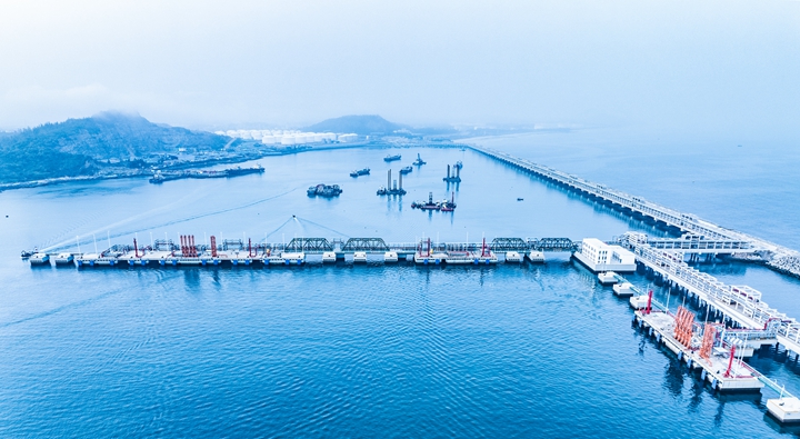 茂名港博賀新港區(qū)東區(qū)油品碼頭工程作為省重點(diǎn)建設(shè)項(xiàng)目,是打造南海能源新通道的奠基項(xiàng)目,由茂名港集團(tuán)有限公司與中國石油化工股份有限公司共同投資建設(shè),總投資規(guī)模龐大,項(xiàng)目建設(shè)一個(gè)10萬噸級油品泊位和4384米公用管廊及配套設(shè)施,項(xiàng)目設(shè)計(jì)吞吐能力890萬噸/年。茂名港博賀新港區(qū)東區(qū)化工碼頭工程項(xiàng)目由茂名港集團(tuán)有限公司獨(dú)資建設(shè),項(xiàng)目建設(shè)三個(gè)1~5萬噸級化工品碼頭泊位及配套設(shè)施,設(shè)計(jì)吞吐能力510萬噸/年。集團(tuán)這兩個(gè)重點(diǎn)建設(shè)項(xiàng)目自開工以來,建設(shè)進(jìn)度和成果一直備受關(guān)注。從“一張白紙”到系統(tǒng)性規(guī)劃到全方位建設(shè),涵蓋了碼頭主體結(jié)構(gòu)、配套設(shè)施、港池疏浚等多個(gè)方面,砥礪四年,每一個(gè)細(xì)節(jié)都凝聚了建設(shè)者們的心血和智慧。