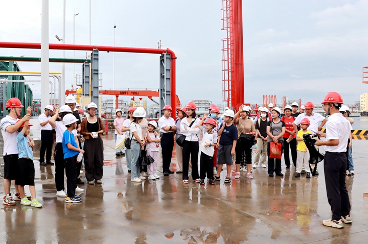 員工與家屬齊聚一堂,共同觀看了集團宣傳片,了解集團的發(fā)展歷史、取得的輝煌成果和新發(fā)展階段的企業(yè)規(guī)劃,讓家屬對親人所從事的工作有了更加深刻的認識。隨后,家屬們先后參觀了辦公樓、碼頭、庫區(qū)等,講解員用通俗易懂的言語為家屬們進行介紹。孩子們聚精會神,被港口項目建設的神奇所吸引。家長們則頻頻點頭,對家人的工作環(huán)境以及集團累累碩果背后凝聚著的智慧與汗水有了更深的了解。