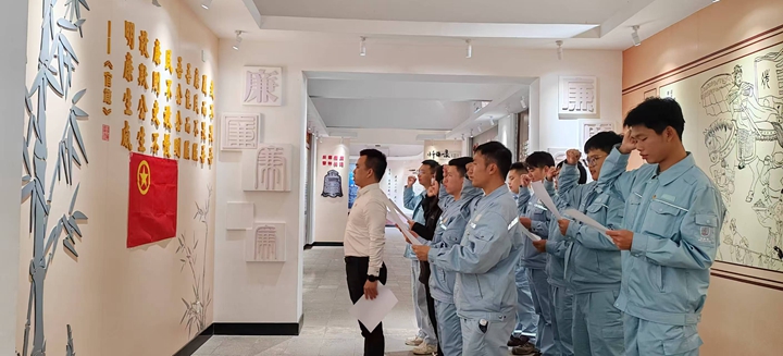 在反腐倡廉教育基地,團支部書記岑俊慧帶領(lǐng)團員青年們重溫入團誓詞,新、老團員青年面向團旗整齊站立,在激昂的宣誓聲中,團員們重溫入團時的初心與使命,進一步堅定理想信念,增強作為一名共青團員的光榮感和責任感。