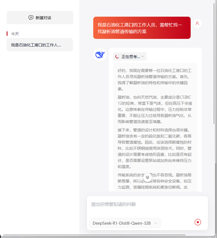 近日,茂名港集團的綜合調度業(yè)務系統(tǒng)成功集成Deepseek大模型,標志著智慧港口建設邁出了重要一步。此次集成不僅提升了港口業(yè)務的可視化與智能化水平,還通過創(chuàng)新的技術方案,確保了港口生產(chǎn)數(shù)據(jù)的安全性與獨立性。 AI賦能港口調度可視化大屏 Deepseek大模型作為國內頂尖的人工智能技術,具備強大的自然語言處理、數(shù)據(jù)分析與互聯(lián)網(wǎng)搜索能力。此次集成將Deepseek的大模型接口嵌入綜合調度業(yè)務系統(tǒng),通過懸浮按鈕“港航智匯”,一鍵喚醒AI大腦,直連Deepseek,實現(xiàn)大屏端業(yè)務全場景智能對話。這一創(chuàng)新設計使港口調度人員能夠實時獲取港航領域的精準業(yè)務搜索、智能咨詢與深度分析服務,顯著提升了工作效率與決策能力,為港口調度業(yè)務的智能化升級注入了全新動力。并且,“港航智匯”可自動保存歷史搜索記錄,方便用戶隨時查看和回溯,提升操作便捷性與工作效率。