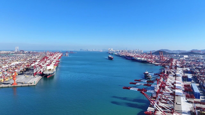 “我們聯(lián)合港口升級(jí)‘關(guān)港通’智慧查驗(yàn)平臺(tái),將涉港作業(yè)的11個(gè)環(huán)節(jié)優(yōu)化縮減至3個(gè),單票貨物物流作業(yè)、繳費(fèi)提離等辦理時(shí)間節(jié)省6小時(shí)以上,優(yōu)先查驗(yàn)的鮮活易腐農(nóng)產(chǎn)品、AEO高級(jí)認(rèn)證企業(yè)貨物平均調(diào)運(yùn)時(shí)間縮短5小時(shí),僅青島港區(qū)每年就可為企業(yè)節(jié)約綜合成本約3500萬(wàn)元!秉S島海關(guān)查檢一處副處長(zhǎng)俞挺說(shuō)道。 此外,青島港將綠色低碳理念貫穿發(fā)展全鏈條,從油電拖輪、氫電拖輪投入使用,到全球首創(chuàng)空軌集疏運(yùn)系統(tǒng);從高點(diǎn)站位、系統(tǒng)制定綠色低碳轉(zhuǎn)型規(guī)劃方案,到發(fā)布“碳中和”港口評(píng)價(jià)標(biāo)準(zhǔn);從規(guī)模化投用新能源裝備,到建成全國(guó)港口首座加氫站、全面升級(jí)岸電設(shè)施,每一項(xiàng)舉措都充分印證了港口作為國(guó)民經(jīng)濟(jì)晴雨表,在綠色低碳發(fā)展中的責(zé)任擔(dān)當(dāng)。