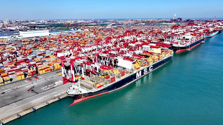 在建成全國(guó)首座全國(guó)產(chǎn)全自主自動(dòng)化碼頭基礎(chǔ)上,青島港加速智慧港口迭代升級(jí),推動(dòng)人工智能應(yīng)用中試基地成果轉(zhuǎn)化。今年以來(lái),持續(xù)優(yōu)化、推廣自主研發(fā)的A-TOS(碼頭智能管控系統(tǒng)),13次刷新自動(dòng)化碼頭裝卸效率世界紀(jì)錄;推進(jìn)傳統(tǒng)碼頭自動(dòng)化改造,通過(guò)研發(fā)碼頭智能體、攻關(guān)自動(dòng)化裝卸關(guān)鍵技術(shù),實(shí)現(xiàn)全場(chǎng)景、全流程、全機(jī)種自動(dòng)化,助力集裝箱、紙漿、鐵礦石、糧食等貨種接連打破效率紀(jì)錄;打造“云港通”口岸線上服務(wù)平臺(tái),實(shí)現(xiàn)“關(guān)港通”智慧查驗(yàn),應(yīng)用全球首個(gè)港口服務(wù)大模型方舟TaaS,進(jìn)一步提升了裝卸作業(yè)的服務(wù)體驗(yàn)和決策效率。 智慧港口效率的提升離不開(kāi)海關(guān)監(jiān)管服務(wù)的升級(jí)保障。青島海關(guān)充分發(fā)揮山東港口青島港在‘一帶一路’中的陸;ヂ(lián)優(yōu)勢(shì),推廣“先期機(jī)檢”“抵港直裝”“船邊直提”等自動(dòng)化作業(yè)模式,通過(guò)升級(jí)升級(jí)智能空軌、集裝箱順勢(shì)核重等智能化設(shè)施設(shè)備,將海關(guān)監(jiān)管無(wú)縫嵌入港口生產(chǎn)作業(yè),實(shí)現(xiàn)了海關(guān)與港口物流信息交互,為外貿(mào)企業(yè)打造了一條綠色、高效的出海物流通道。