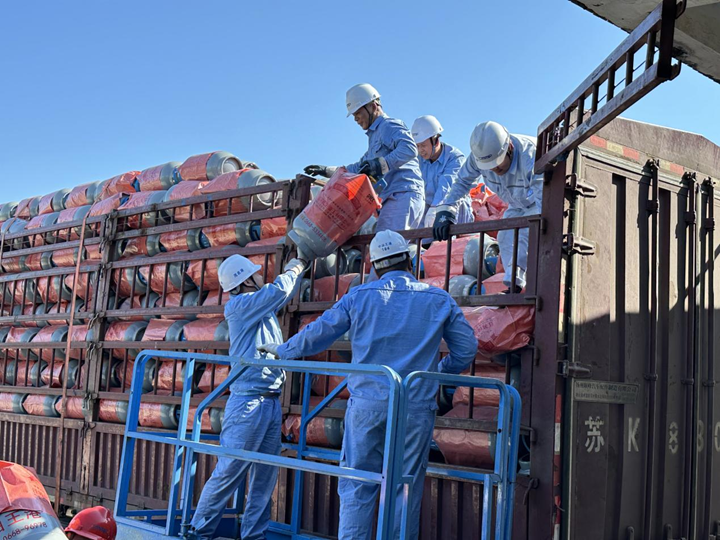 午時(shí)剛過,滿載氣瓶的貨車抵達(dá)作業(yè)區(qū)域。隨著現(xiàn)場(chǎng)指揮黃思揚(yáng)一聲令下,干部職工迅速組成攻堅(jiān)梯隊(duì),形成“卸載—轉(zhuǎn)運(yùn)—碼放”高效作業(yè)鏈。青年員工陳子豪、鄧卓晶主動(dòng)承擔(dān)車頂重活,老員工龔波、楊靖發(fā)揮經(jīng)驗(yàn)優(yōu)勢(shì)統(tǒng)籌協(xié)調(diào),全員動(dòng)作規(guī)范、配合默契,經(jīng)過兩小時(shí)連續(xù)奮戰(zhàn),圓滿完成任務(wù)。