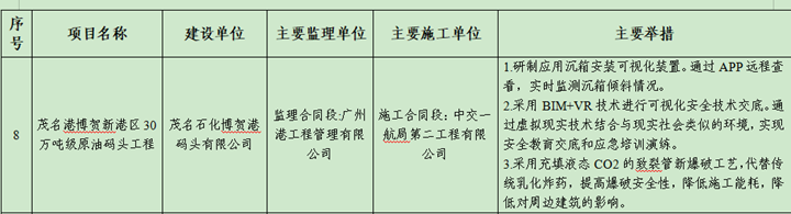 近日,廣東省交通運(yùn)輸廳正式發(fā)布2024年度公路水運(yùn)工程“平安工地”建設(shè)典型案例名單,由茂名港集團(tuán)投資建設(shè)的茂名港博賀新港區(qū)30萬噸級原油碼頭項目憑借先進(jìn)的安全管理理念、創(chuàng)新的技術(shù)防控舉措及扎實的平安建設(shè)成效成功入選,成為全省9個獲此殊榮的項目之一。這是該項目首次獲得省級“平安工地”建設(shè)典型案例認(rèn)定,標(biāo)志著項目在黨建引領(lǐng)、安全管理、技術(shù)創(chuàng)新及施工標(biāo)準(zhǔn)化方面走在了全省前列。